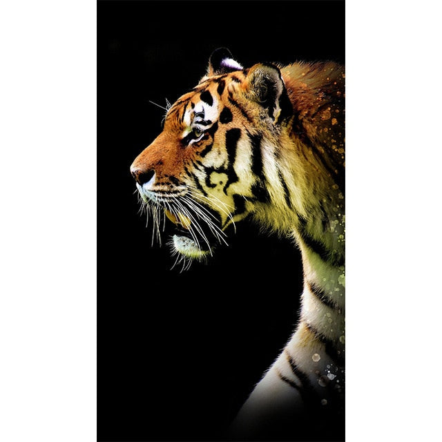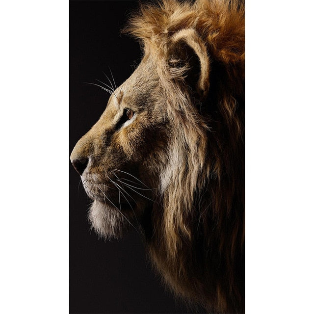 This artwork captures a quiet moment of reflection in the wild—where strength rests, breath slows, and instinct meets awareness. The lion’s profile, illuminated against a deep, dark backdrop, invites you into a space of calm confidence and inner power.